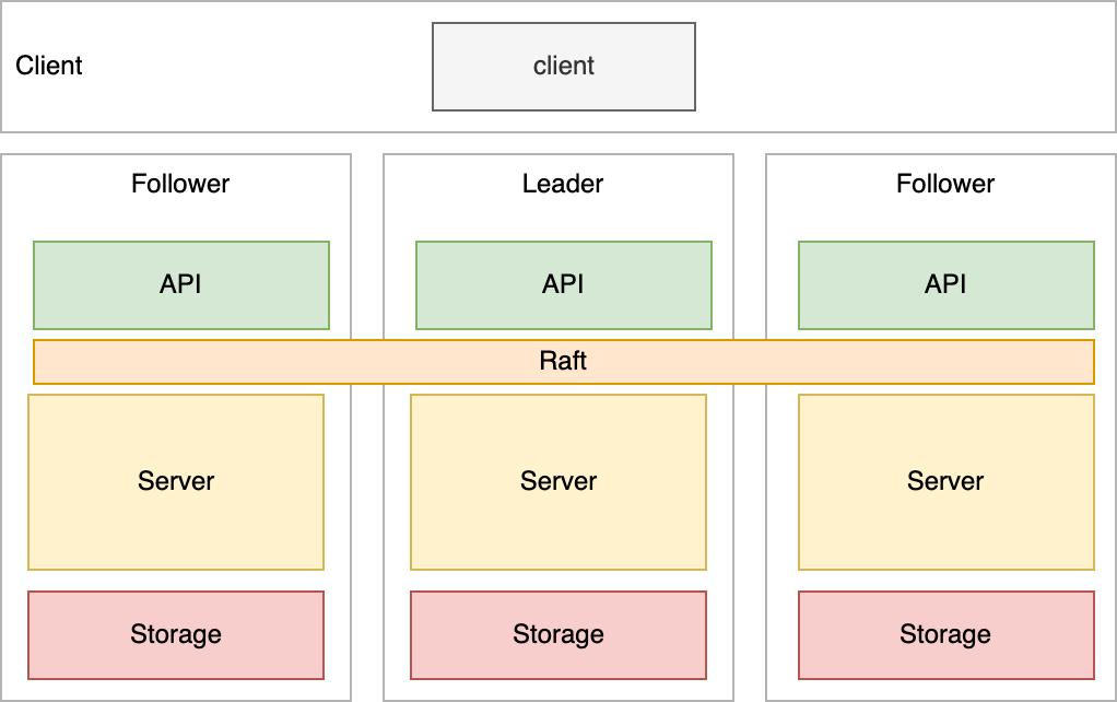 - Server 节点之间使用 HTTP 协议,通过 Raft 算法实现数据复制和 Leader 选举等功能